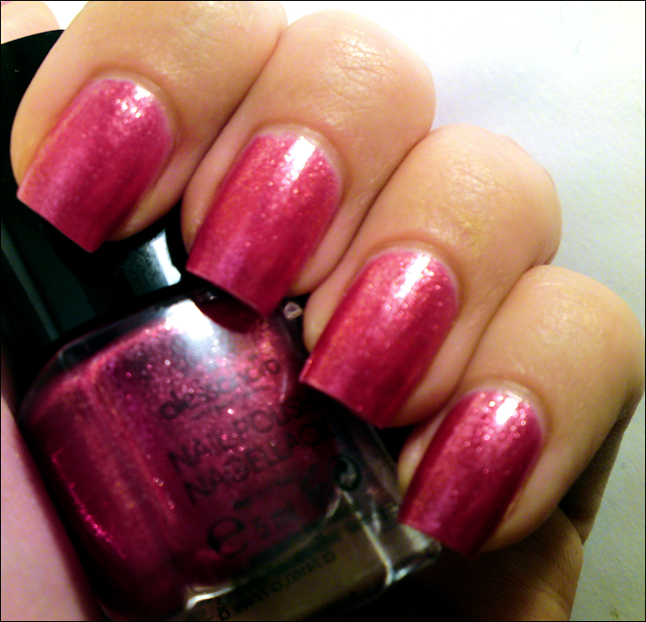 It's a berry pink with pink shimmer polish. Gorgeous!